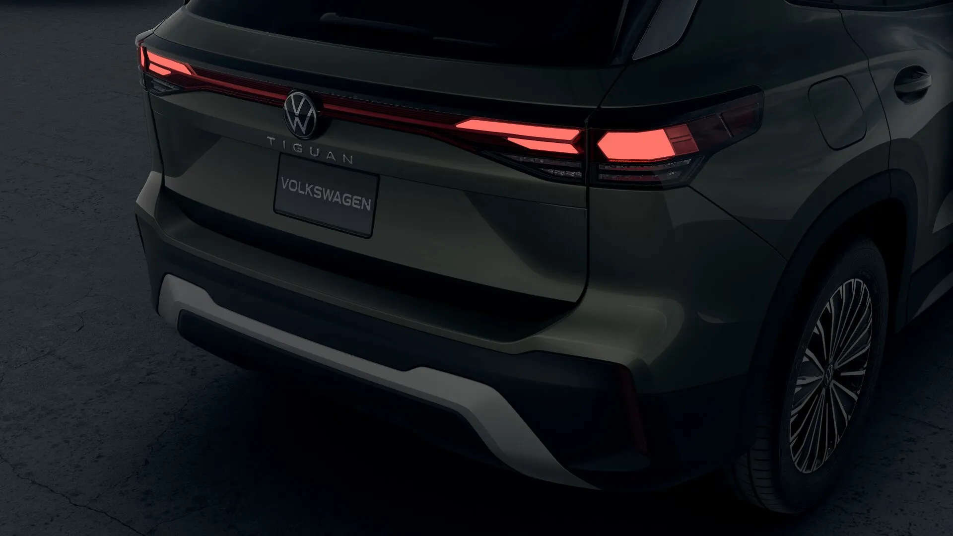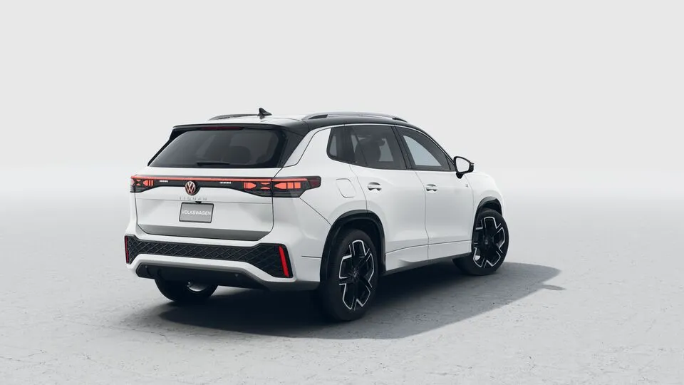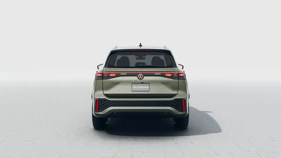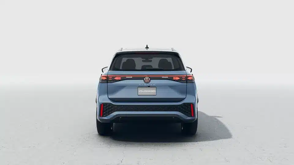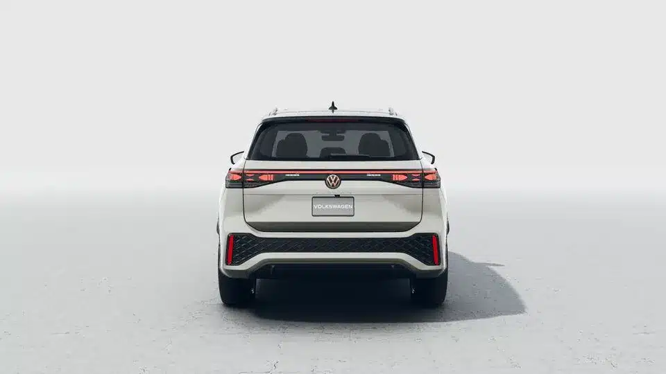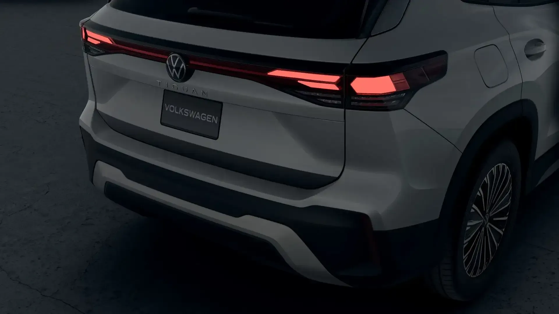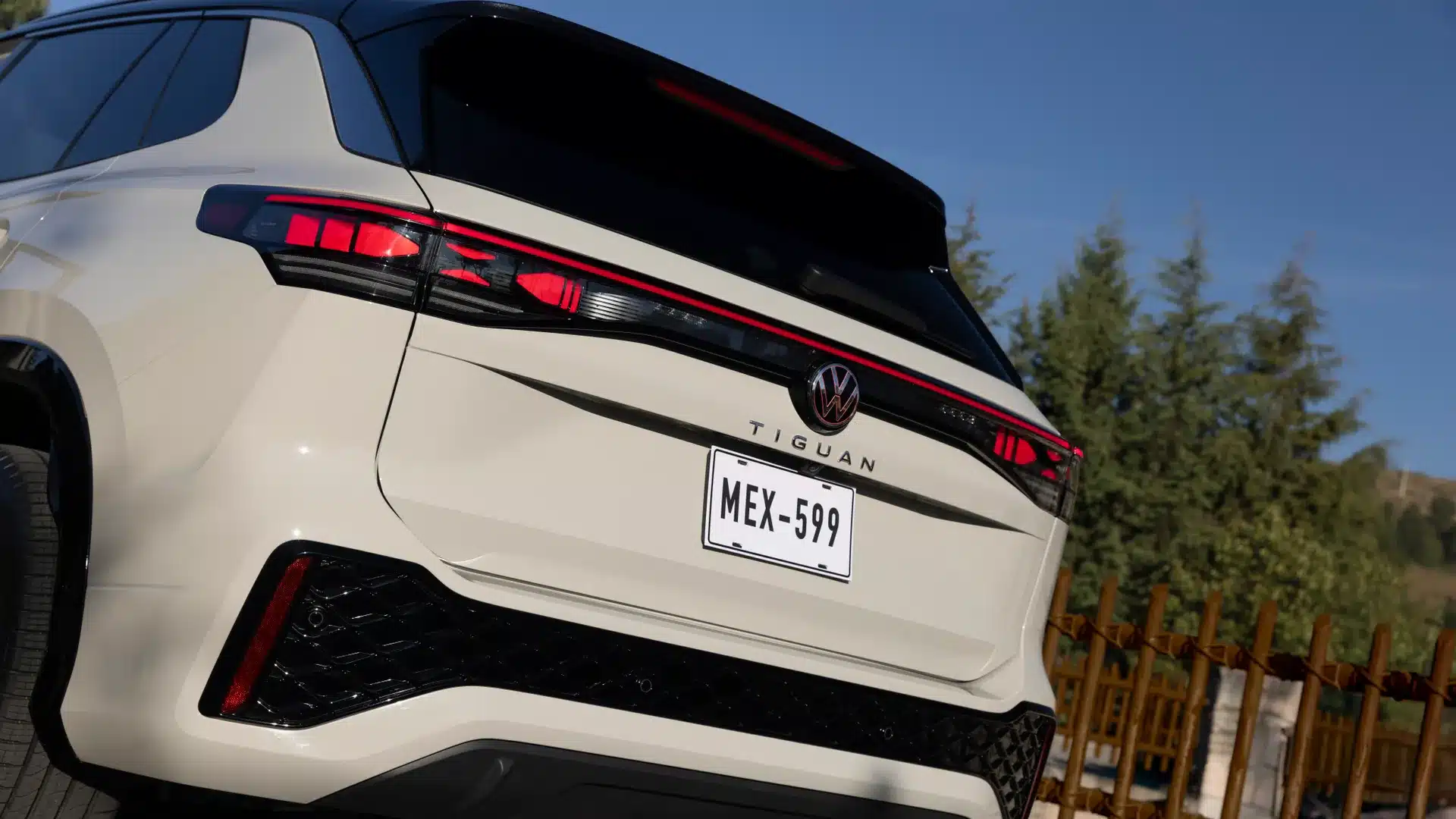 Firma nocturna La parte trasera del Nuevo Tiguan 2025 se destaca por un diseño cómodo, con emblemas Volkswagen iluminados.