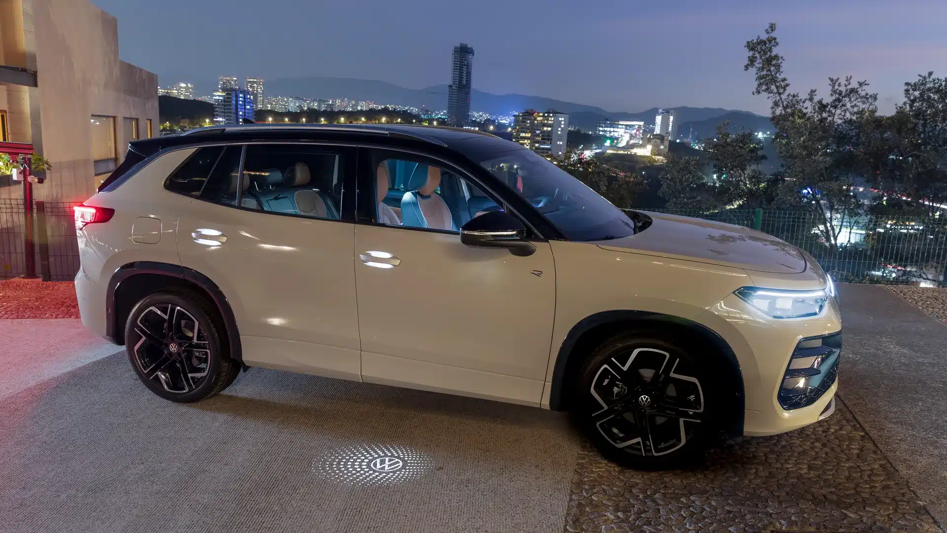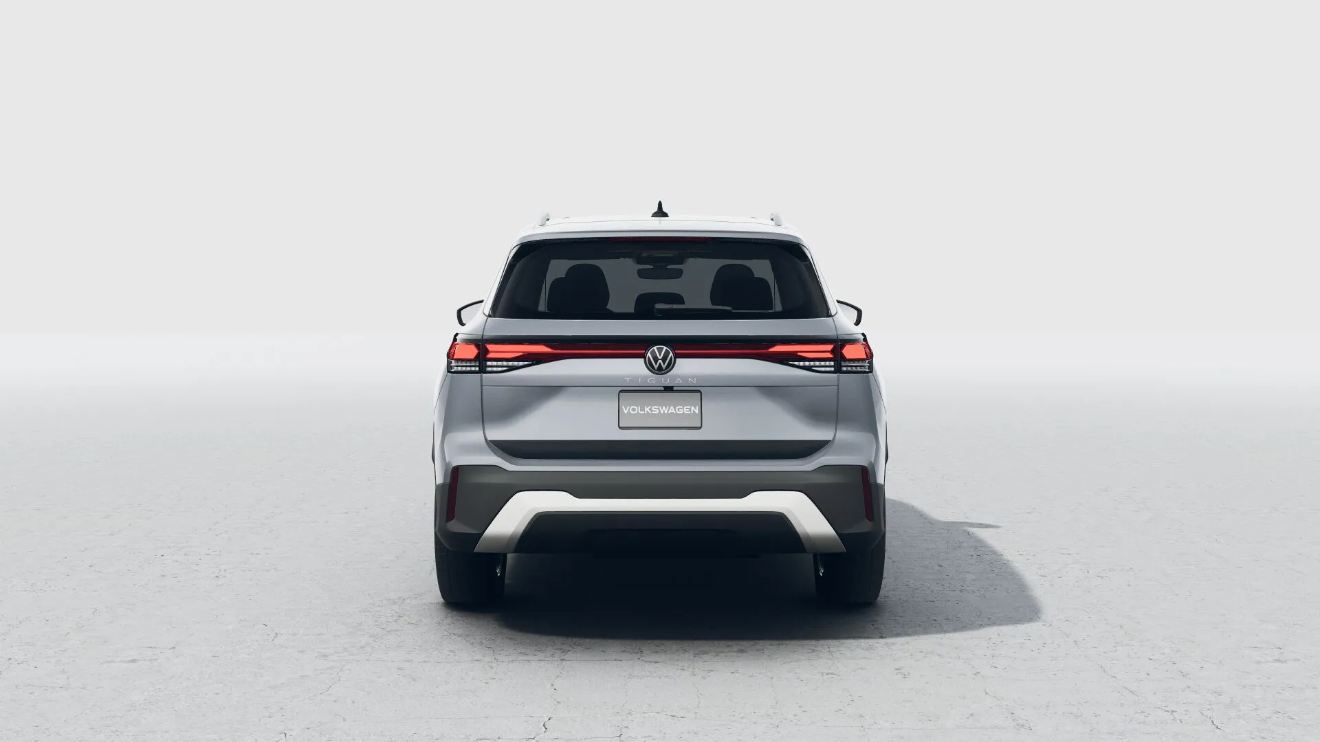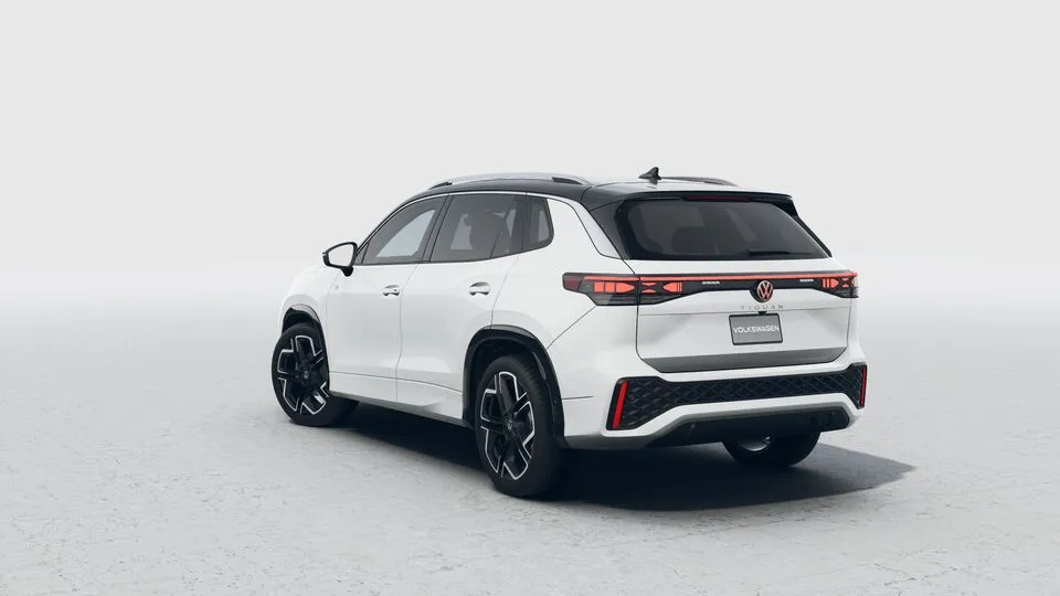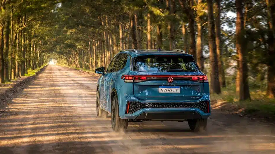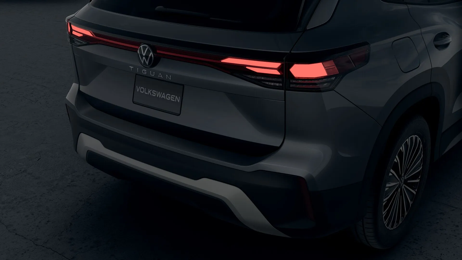 Firma nocturna La parte trasera del Nuevo Tiguan 2025 se destaca por un diseño cómodo, con emblemas Volkswagen iluminados.
