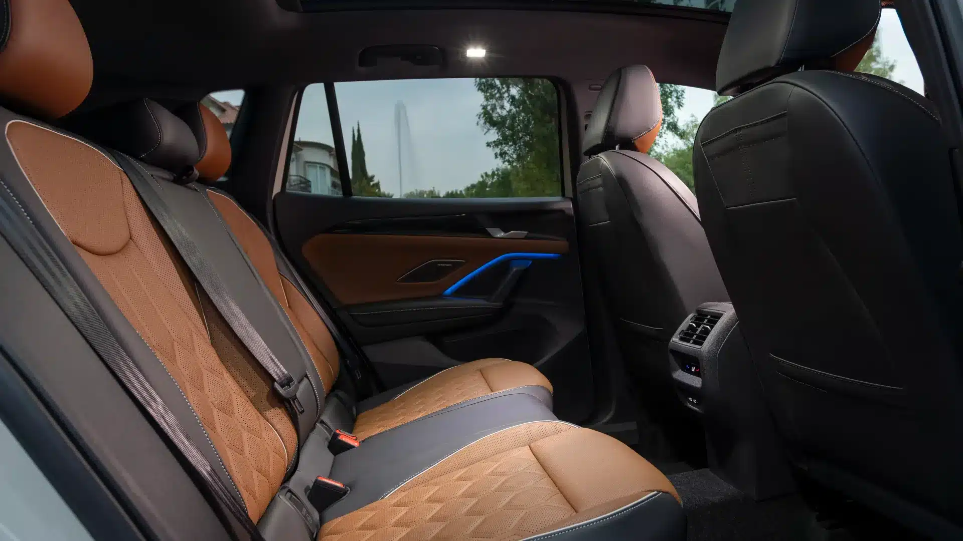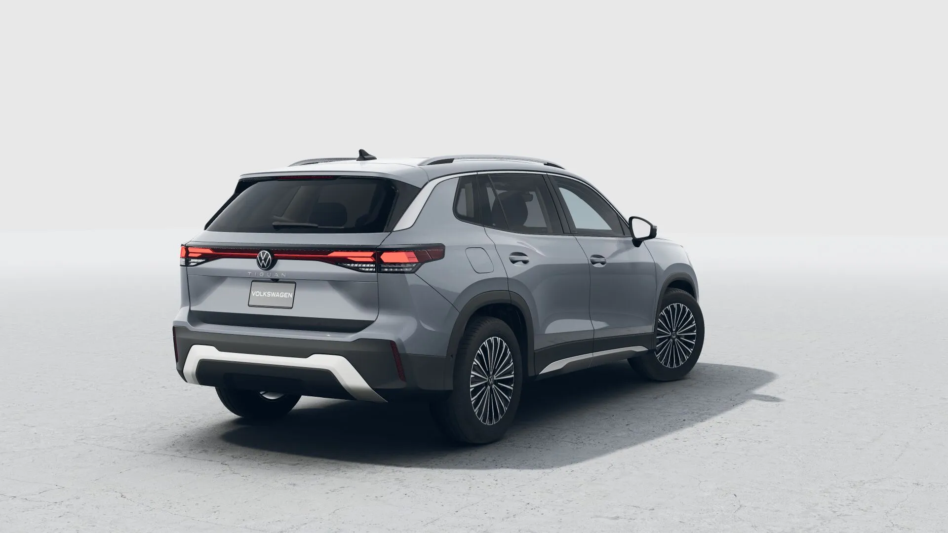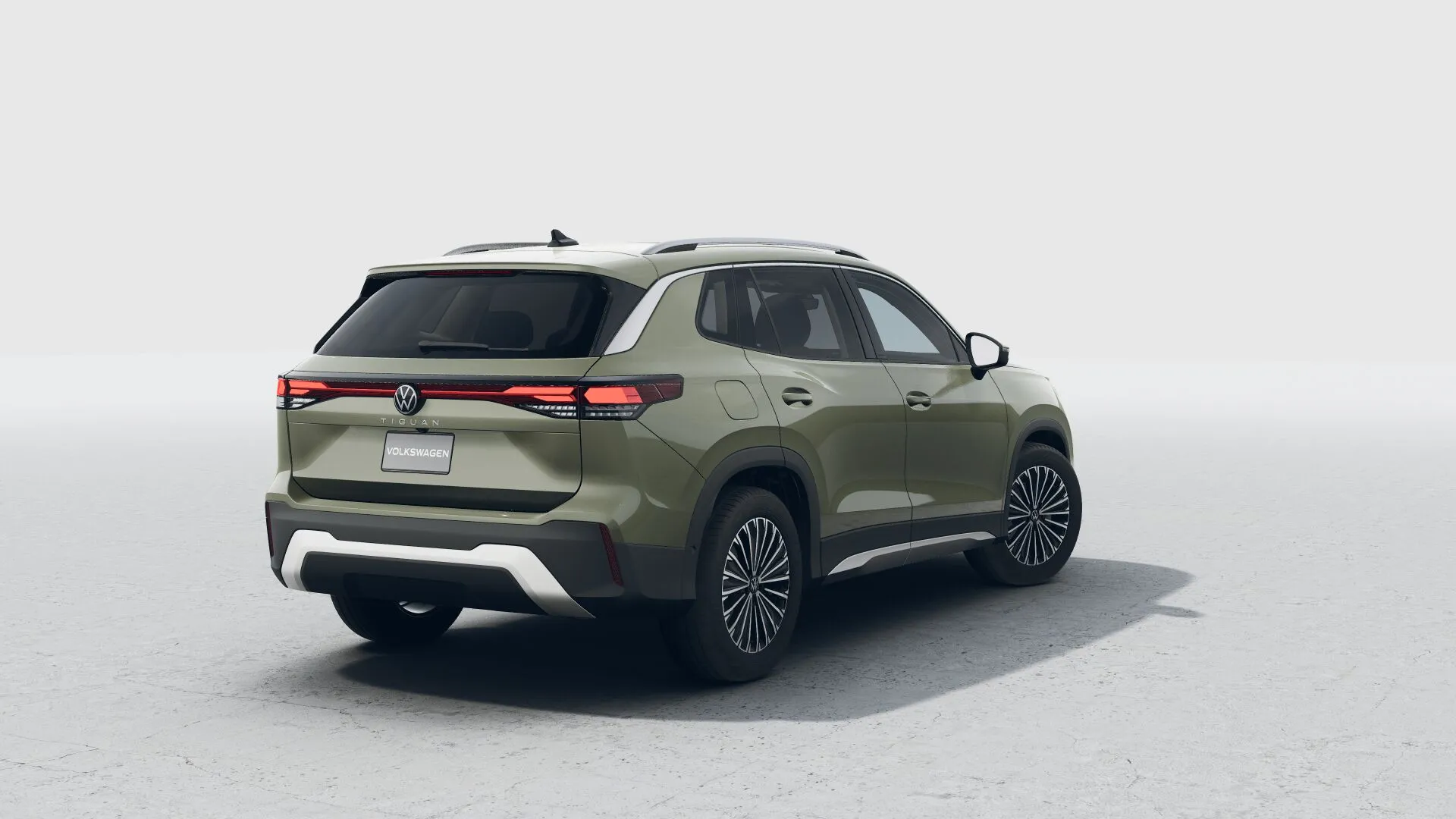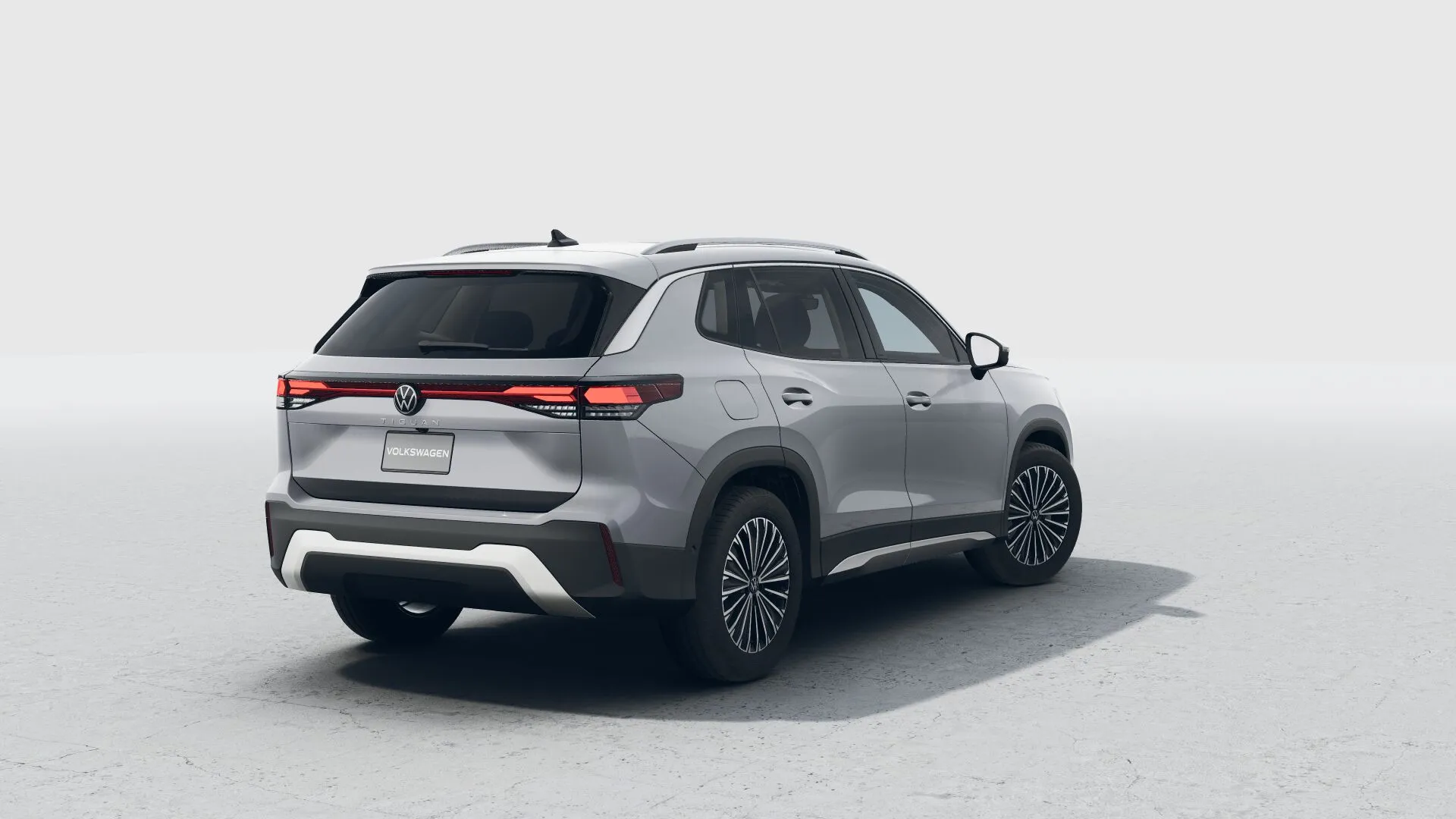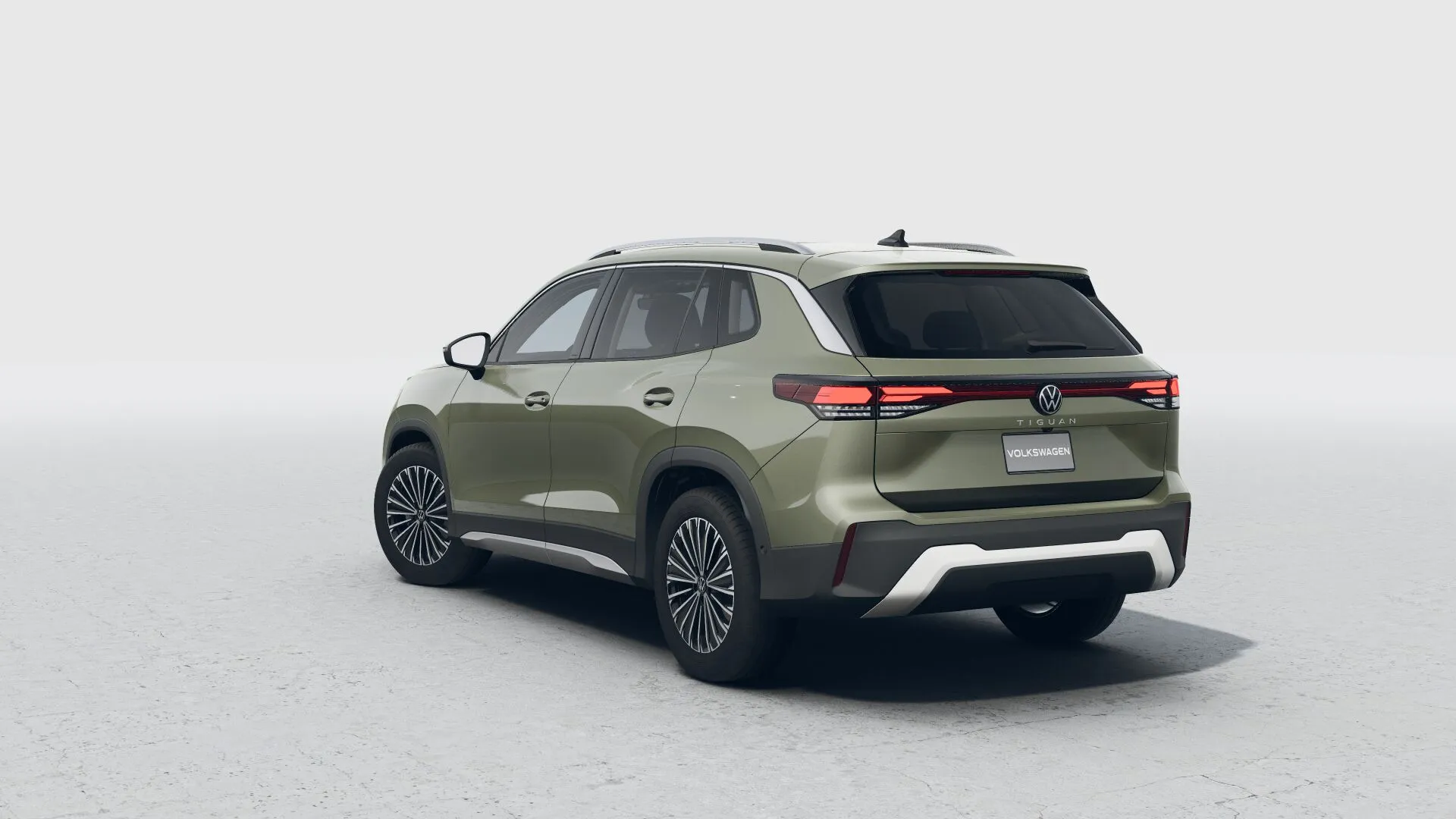 Firma nocturna La parte trasera del Nuevo Tiguan 2025 se destaca por un diseño cómodo, con emblemas Volkswagen iluminados.